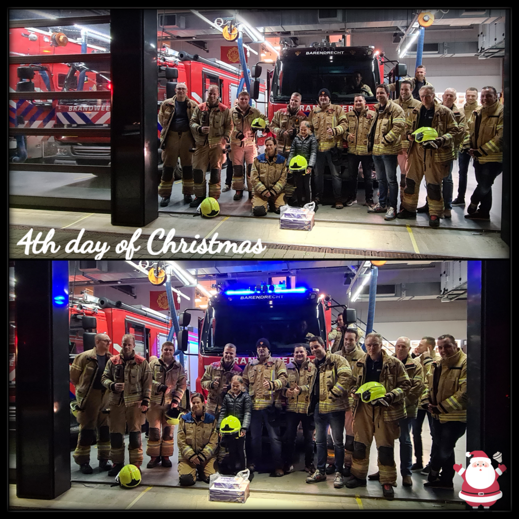 On the 4th day of Christmas, we took a thank you treat to the very brave firemen and firewomen that so fearlessly serve us day in and day out. It was a practice evening at the fire department so there was a full team present.